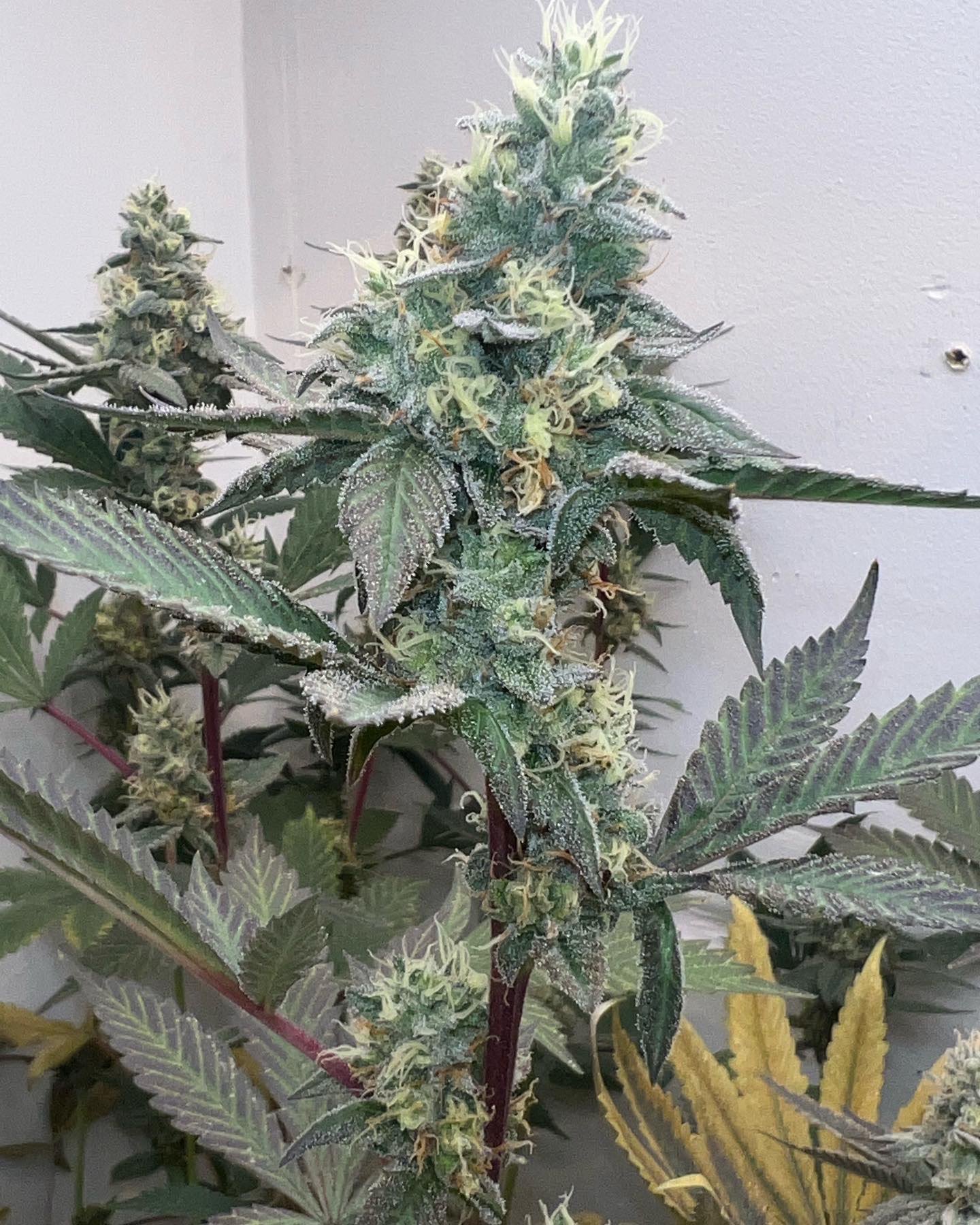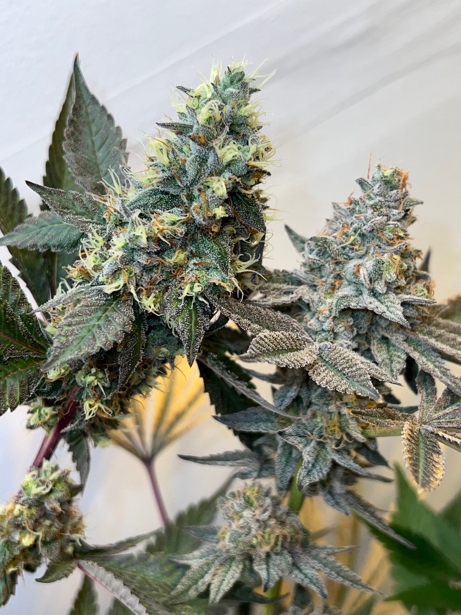Very similar growth patterns to the GMO cut. Very few large leaves that allows plenty of light into the canopy and a lot of stretch resulting in long pointed spear shaped tops. A great morphology for growing a multi topped bush. I recommend leaving plenty of head space before flowering as some phenos can easily triple in height. Personally I would top early and often with this one or grow in a sea of green method for best yield.