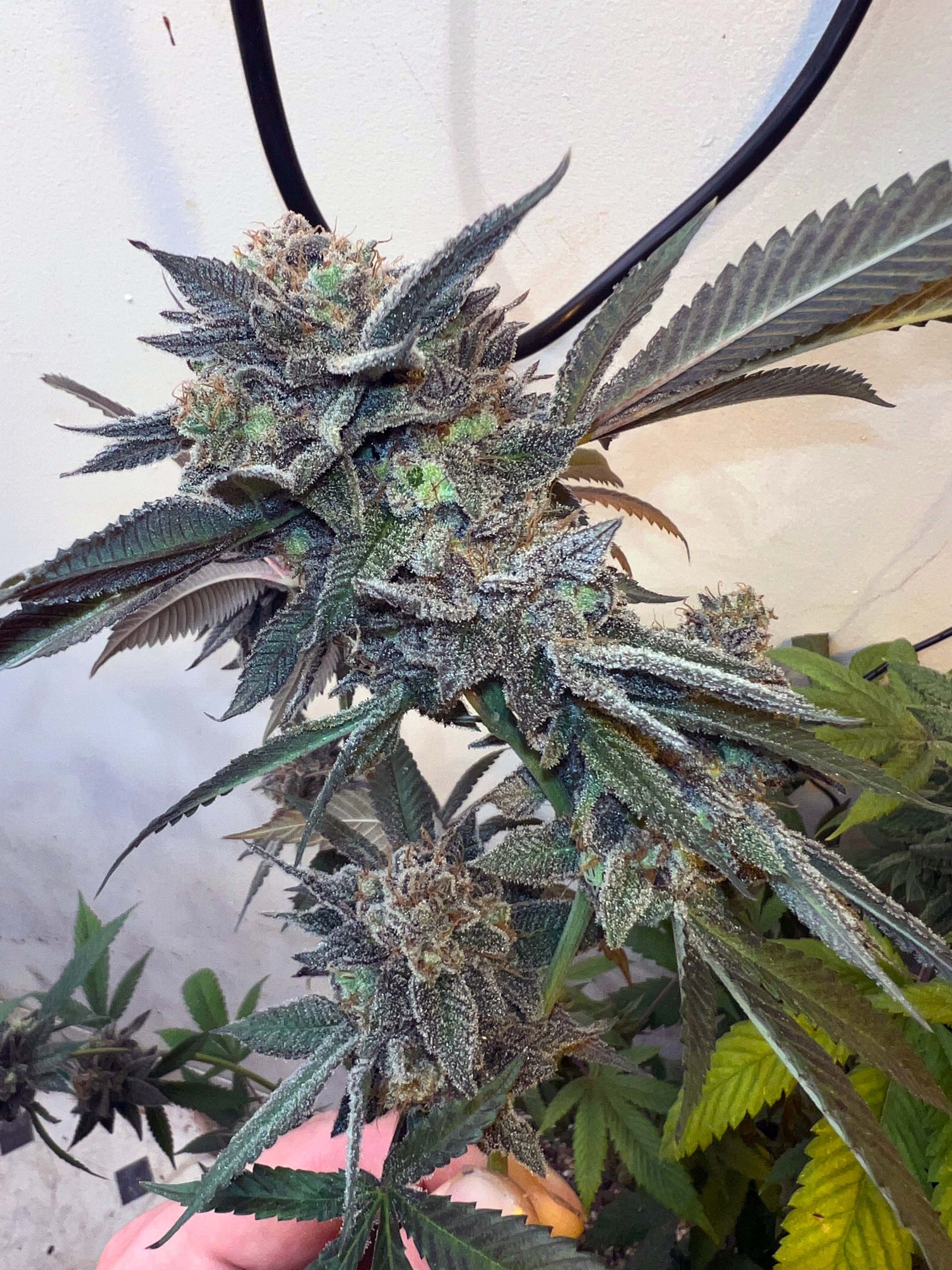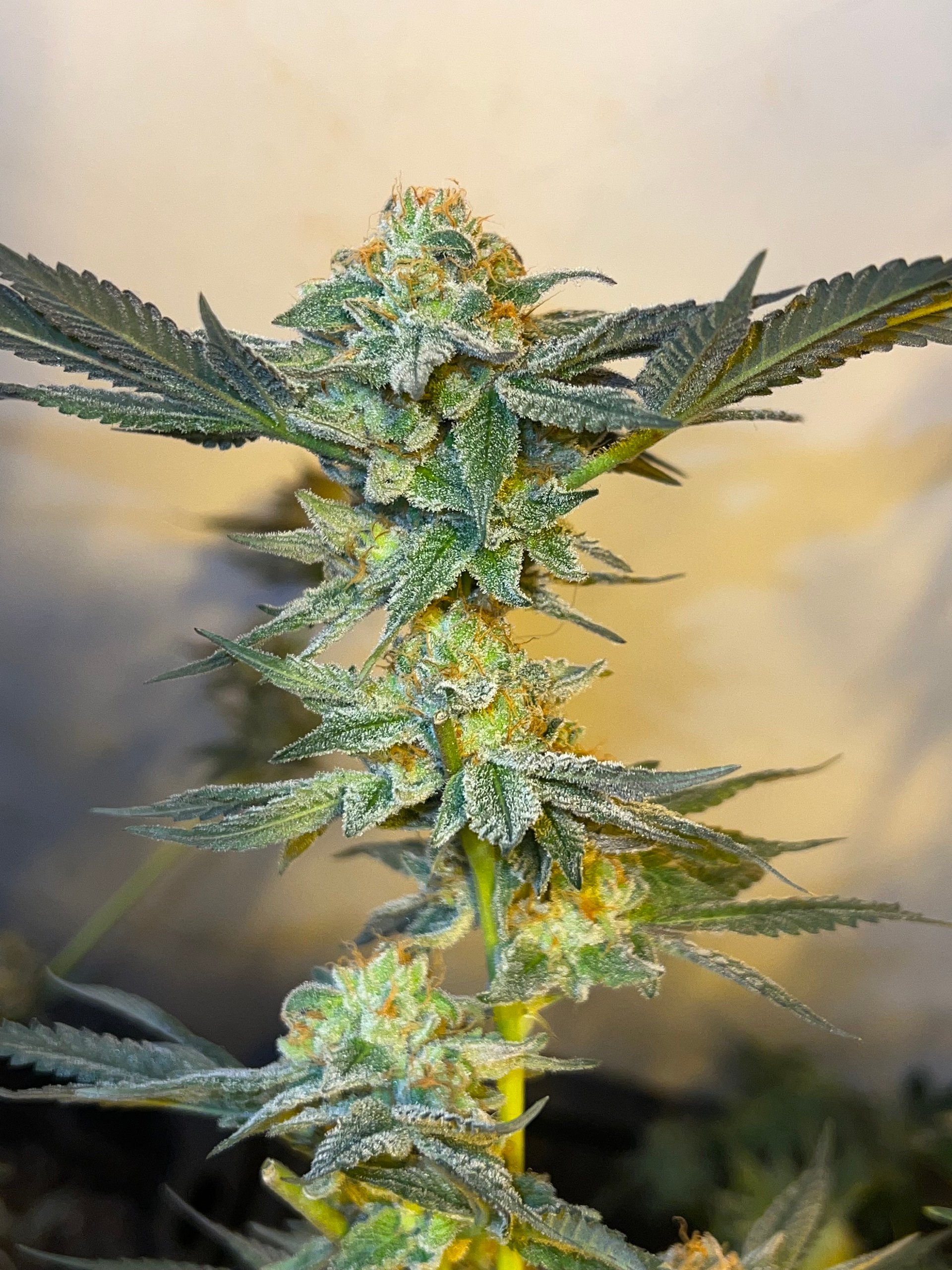 Structure can vary between apical dominant tight internode colas to more branchy spaced out internodes with a lot of stretch. Expect harvest windows between 9-10 weeks. Returns can be good or slightly lower depending on selection and growers skill, there’s a fair bit of variation in this line. The upside of the more branchy long internode phenos is that many of those are extremely resinous and dense, plus lowers fill out well as the morphology allows plenty of light to penetrate the canopy.